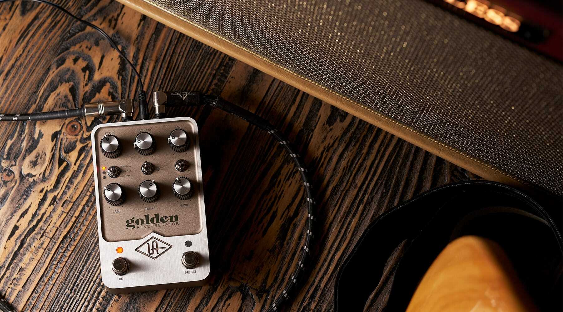 Harnessing more than 20 years of reverb modeling expertise, UAFX Golden Reverberator puts a trio of iconic reverbs right at your feet. The tube-driven spring reverb of classic ’60s guitar amps. The dense and haunting sound of ’50s studio plate reverbs. The endless algorithmic wonder of early digital reverb hardware.