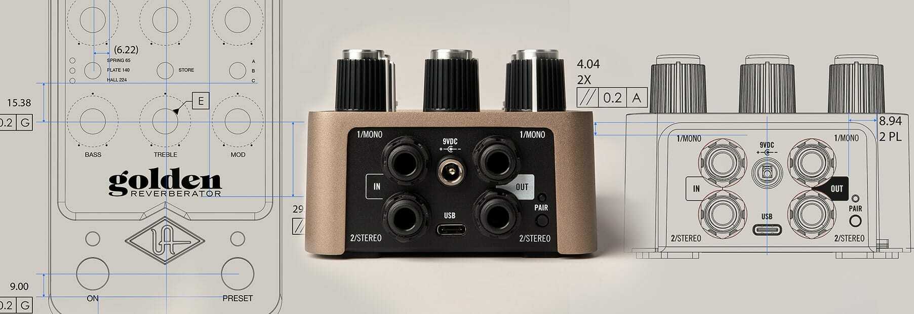 With modern, high-powered features like studio‑grade conversion, dual‑processing engines, additional downloadable effects, Live/Preset modes, true/buffered bypass* with silent switching, effect trails, and analog dry through, Golden Reverberator radiates pure reverb perfection — in a beautiful stompbox that's built to last decades.